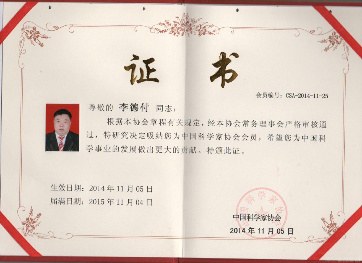 熱烈慶祝我公司李德付經(jīng)理成為中國科學(xué)家學(xué)會會員